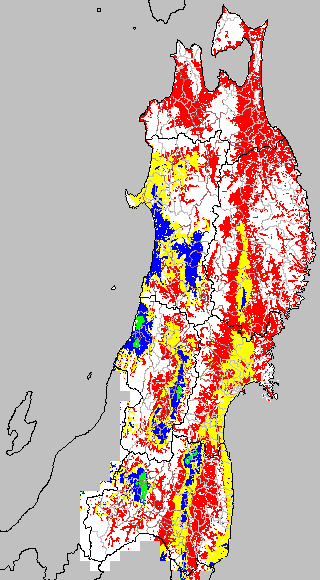 各種文献などを参考にして、分げつ形成に関する限界温度を平均気温で15℃と設定し、15℃以上については1℃刻みで表示します。過去7日の移動平均値で示す。分げつの形成が遅延すると予想される地域を監視するものです。