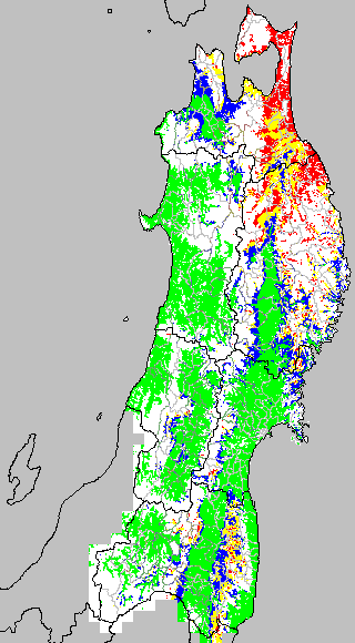 安全作期の策定にある気温指標のうち、中苗・成苗移植の安全早限日の気温指標13.0℃を用いて表示しています。13.0℃以下については1℃刻みで表示し、可能域がどのように推移するかをみるものです。