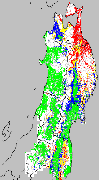安全作期の策定にある気温指標のうち、乾田直播の安全早限日の気温指標13.5℃を用いて表示しています。13.5℃以下については1℃刻みで表示し、可能域がどのように推移するかをみるものです。