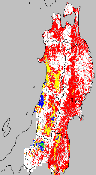 各種文献などを参考にして、分げつ形成に関する限界温度を平均気温で15℃と設定し、15℃以上については1℃刻みで表示します。過去7日の移動平均値で示す。分げつの形成が遅延すると予想される地域を監視するものです。