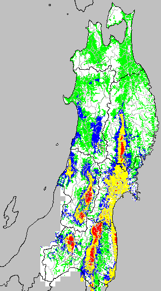 安全作期の策定にある気温指標のうち、いもち病蔓延可能日の平均気温指標20.0℃を用いて表示し、20.0℃未満については1℃刻みで表示します。過去7日の移動平均値で示しています。いもち病の蔓延可能域を監視するものです。葉いもち発生予察メッシュと併せてご覧ください。