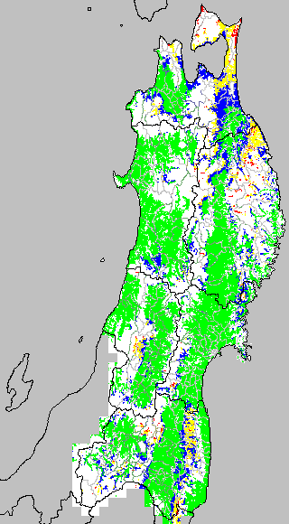 この時期平均気温が20℃以下になると、低温障害が発生しやすくなる。そこで、20℃を限界気温として、深水管理の必要な地域を特定する。また、平均気温が20〜21℃の地域も特に前歴深水管理を行う方が望ましい。この気温指標は前7日間の移動平均値で示す。
