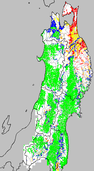 この時期平均気温が20℃以下になると、低温障害が発生しやすくなる。そこで、20℃を限界気温として、深水管理の必要な地域を特定する。また、平均気温が20〜21℃の地域も特に前歴深水管理を行う方が望ましい。この気温指標は前7日間の移動平均値で示す。