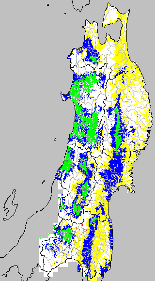 開花・受精期も低温に弱い時期です。文献等を参考に開花・受精に不適な地域の移り変わりを、最高気温を用いて前5日間の移動平均値で図示します。