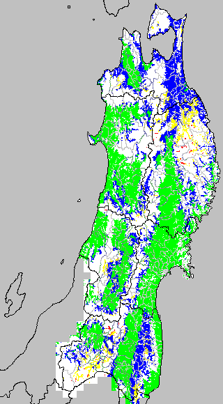 低温障害の発生の基準温度として、最低気温17℃が一般によく使われます。それを基に、極端な低温が来た地域の移り変わりを、最低気温の前3日の移動平均値で図示します。