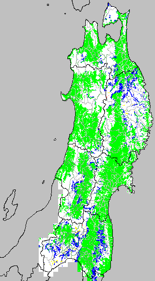 低温障害の発生の基準温度として、最低気温17℃が一般によく使われます。それを基に、極端な低温が来た地域の移り変わりを、最低気温の前3日の移動平均値で図示します。