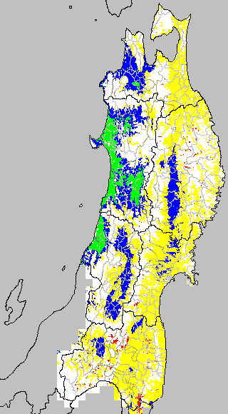 開花・受精期も低温に弱い時期です。文献等を参考に開花・受精に不適な地域の移り変わりを、最高気温を用いて前5日間の移動平均値で図示します。