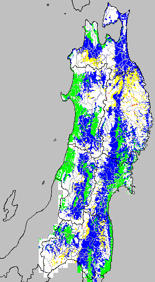 低温障害の発生の基準温度として、最低気温17℃が一般によく使われます。それを基に、極端な低温が来た地域の移り変わりを、最低気温の前3日の移動平均値で図示します。