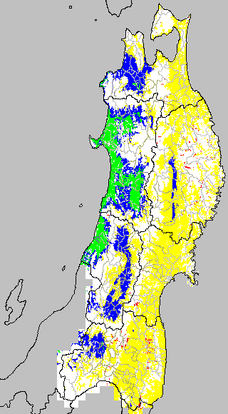 開花・受精期も低温に弱い時期です。文献等を参考に開花・受精に不適な地域の移り変わりを、最高気温を用いて前5日間の移動平均値で図示します。
