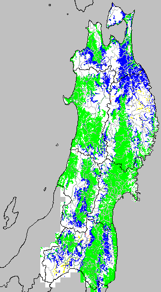 低温障害の発生の基準温度として、最低気温17℃が一般によく使われます。それを基に、極端な低温が来た地域の移り変わりを、最低気温の前3日の移動平均値で図示します。