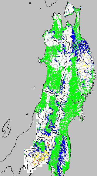 低温障害の発生の基準温度として、最低気温17℃が一般によく使われます。それを基に、極端な低温が来た地域の移り変わりを、最低気温の前3日の移動平均値で図示します。