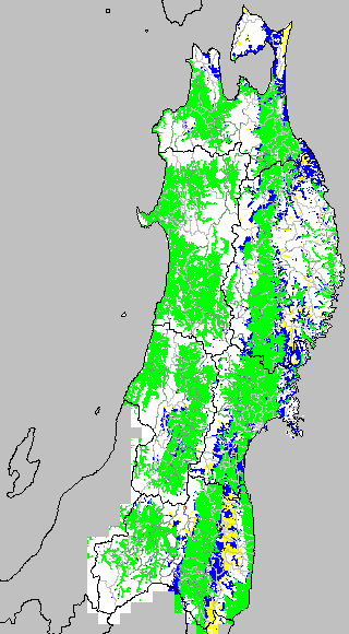 開花・受精期も低温に弱い時期です。文献等を参考に開花・受精に不適な地域の移り変わりを、最高気温を用いて前5日間の移動平均値で図示します。