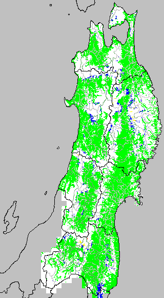 開花・受精期も低温に弱い時期です。文献等を参考に開花・受精に不適な地域の移り変わりを、最高気温を用いて前5日間の移動平均値で図示します。