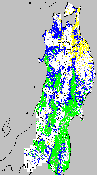 開花・受精期も低温に弱い時期です。文献等を参考に開花・受精に不適な地域の移り変わりを、最高気温を用いて前5日間の移動平均値で図示します。