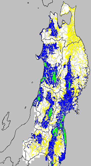 開花・受精期も低温に弱い時期です。文献等を参考に開花・受精に不適な地域の移り変わりを、最高気温を用いて前5日間の移動平均値で図示します。