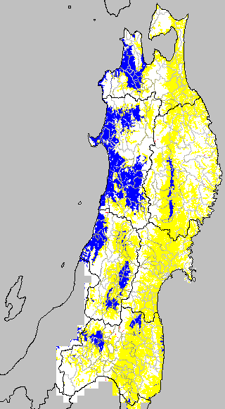 開花・受精期も低温に弱い時期です。文献等を参考に開花・受精に不適な地域の移り変わりを、最高気温を用いて前5日間の移動平均値で図示します。