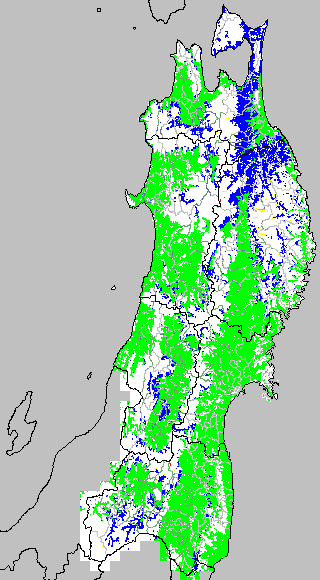 低温障害の発生の基準温度として、最低気温17℃が一般によく使われます。それを基に、極端な低温が来た地域の移り変わりを、最低気温の前3日の移動平均値で図示します。