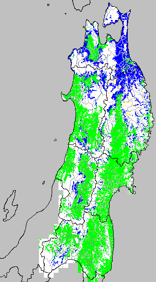 低温障害の発生の基準温度として、最低気温17℃が一般によく使われます。それを基に、極端な低温が来た地域の移り変わりを、最低気温の前3日の移動平均値で図示します。