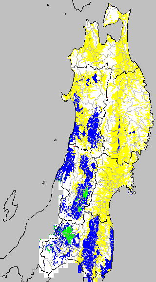 開花・受精期も低温に弱い時期です。文献等を参考に開花・受精に不適な地域の移り変わりを、最高気温を用いて前5日間の移動平均値で図示します。