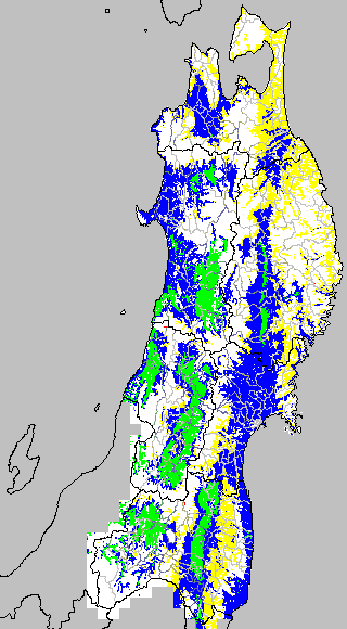 開花・受精期も低温に弱い時期です。文献等を参考に開花・受精に不適な地域の移り変わりを、最高気温を用いて前5日間の移動平均値で図示します。