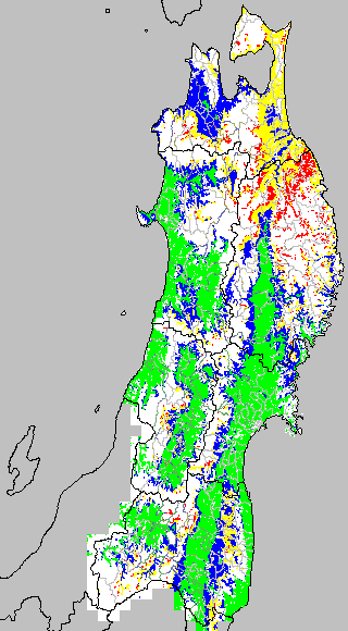 この時期平均気温が20℃以下になると、低温障害が発生しやすくなる。そこで、20℃を限界気温として、深水管理の必要な地域を特定する。また、平均気温が20〜21℃の地域も特に前歴深水管理を行う方が望ましい。この気温指標は前7日間の移動平均値で示す。