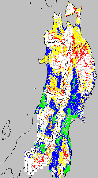 低温障害の発生の基準温度として、最低気温17℃が一般によく使われます。それを基に、極端な低温が来た地域の移り変わりを、最低気温の前3日の移動平均値で図示します。