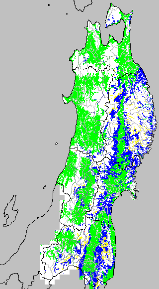 開花・受精期も低温に弱い時期です。文献等を参考に開花・受精に不適な地域の移り変わりを、最高気温を用いて前5日間の移動平均値で図示します。