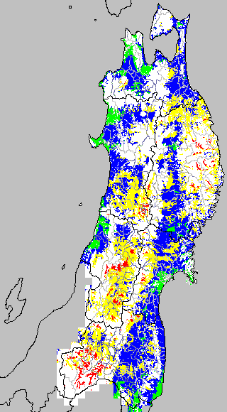 低温障害の発生の基準温度として、最低気温17℃が一般によく使われます。それを基に、極端な低温が来た地域の移り変わりを、最低気温の前3日の移動平均値で図示します。