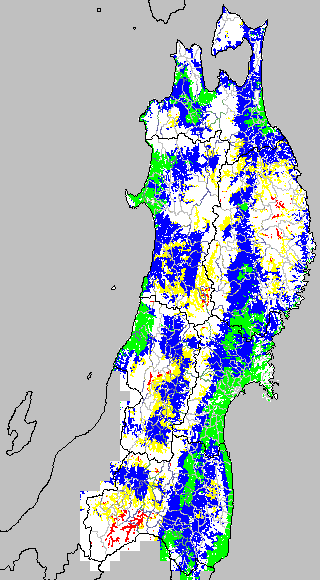 低温障害の発生の基準温度として、最低気温17℃が一般によく使われます。それを基に、極端な低温が来た地域の移り変わりを、最低気温の前3日の移動平均値で図示します。