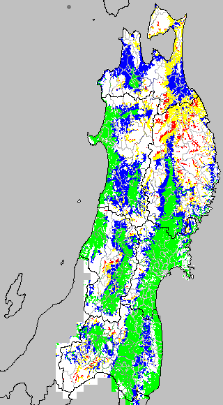 この時期平均気温が20℃以下になると、低温障害が発生しやすくなる。そこで、20℃を限界気温として、深水管理の必要な地域を特定する。また、平均気温が20〜21℃の地域も特に前歴深水管理を行う方が望ましい。この気温指標は前7日間の移動平均値で示す。