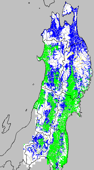 冷却量は((日平均気温−20℃)の積算値)で得られる指標である。この値が負でかつ数値が大きいほど低温の程度が大きくなり、低温被害が大きくなると推定される。この気温指標は前7日間の冷却量を積算して示す。