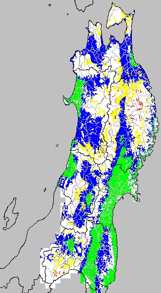 低温障害の発生の基準温度として、最低気温17℃が一般によく使われます。それを基に、極端な低温が来た地域の移り変わりを、最低気温の前3日の移動平均値で図示します。