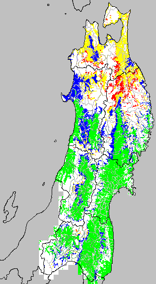 冷却量は((日平均気温−20℃)の積算値)で得られる指標である。この値が負でかつ数値が大きいほど低温の程度が大きくなり、低温被害が大きくなると推定される。この気温指標は前7日間の移動平均値を基に変換して示す。