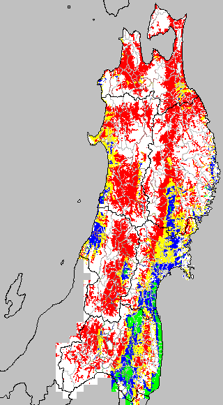 安全作期の策定にある気温指標のうち、夏作物の生育可能な気温指標10℃を用いて表示しています。10℃以下については1℃刻みで表示し、可能域がどのように推移するかをみるものです。