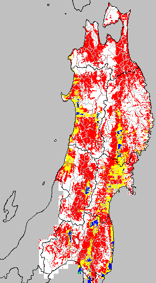 安全作期の策定にある気温指標のうち、湛水直播の安全早限日の気温指標11.5℃を用いて表示しています。11.5℃以下については1℃刻みで表示し、可能域がどのように推移するかをみるものです。