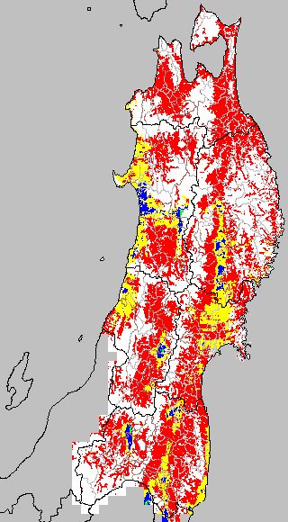安全作期の策定にある気温指標のうち、湛水直播の安全早限日の気温指標11.5℃を用いて表示しています。11.5℃以下については1℃刻みで表示し、可能域がどのように推移するかをみるものです。