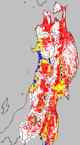 安全作期の策定にある気温指標のうち、湛水直播の安全早限日の気温指標11.5℃を用いて表示しています。11.5℃以下については1℃刻みで表示し、可能域がどのように推移するかをみるものです。