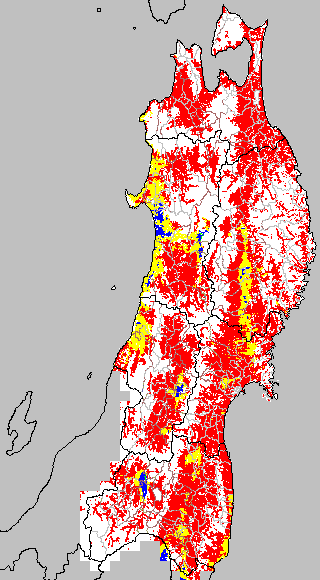 安全作期の策定にある気温指標のうち、稚苗移植の安全早限日の気温指標12.0℃を用いて表示しています。12.0℃以下については1℃刻みで表示し、可能域がどのように推移するかをみるものです。