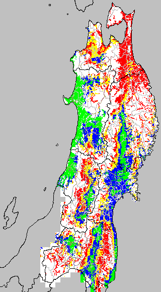 安全作期の策定にある気温指標のうち、夏作物の生育可能な気温指標10℃を用いて表示しています。10℃以下については1℃刻みで表示し、可能域がどのように推移するかをみるものです。