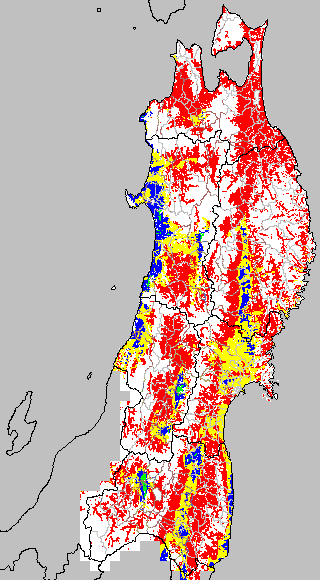 安全作期の策定にある気温指標のうち、稚苗移植の安全早限日の気温指標12.0℃を用いて表示しています。12.0℃以下については1℃刻みで表示し、可能域がどのように推移するかをみるものです。