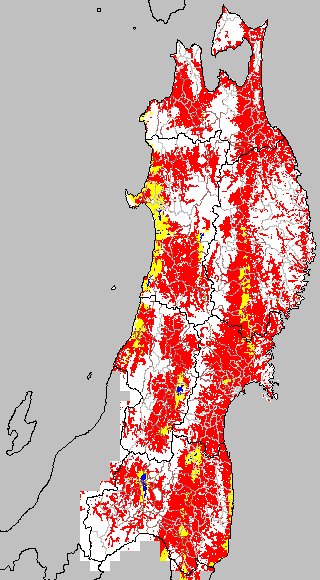 安全作期の策定にある気温指標のうち、中苗・成苗移植の安全早限日の気温指標13.0℃を用いて表示しています。13.0℃以下については1℃刻みで表示し、可能域がどのように推移するかをみるものです。