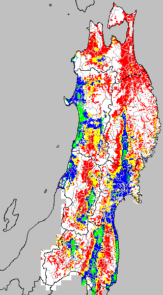 安全作期の策定にある気温指標のうち、湛水直播の安全早限日の気温指標11.5℃を用いて表示しています。11.5℃以下については1℃刻みで表示し、可能域がどのように推移するかをみるものです。
