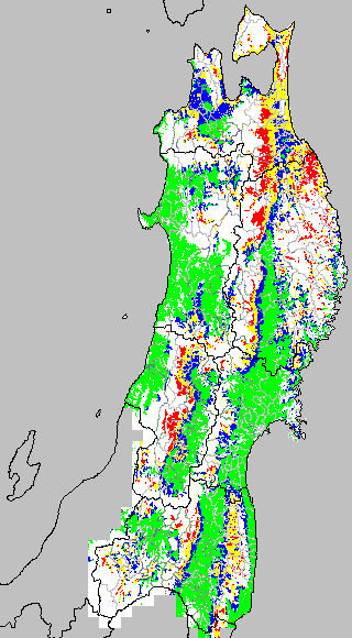 安全作期の策定にある気温指標のうち、夏作物の生育可能な気温指標10℃を用いて表示しています。10℃以下については1℃刻みで表示し、可能域がどのように推移するかをみるものです。