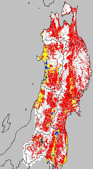 安全作期の策定にある気温指標のうち、乾田直播の安全早限日の気温指標13.5℃を用いて表示しています。13.5℃以下については1℃刻みで表示し、可能域がどのように推移するかをみるものです。