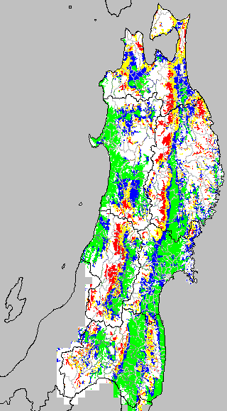 安全作期の策定にある気温指標のうち、稚苗移植の安全早限日の気温指標12.0℃を用いて表示しています。12.0℃以下については1℃刻みで表示し、可能域がどのように推移するかをみるものです。