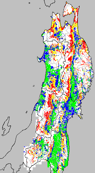 安全作期の策定にある気温指標のうち、中苗・成苗移植の安全早限日の気温指標13.0℃を用いて表示しています。13.0℃以下については1℃刻みで表示し、可能域がどのように推移するかをみるものです。
