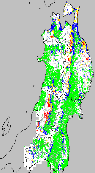 安全作期の策定にある気温指標のうち、稚苗移植の安全早限日の気温指標12.0℃を用いて表示しています。12.0℃以下については1℃刻みで表示し、可能域がどのように推移するかをみるものです。