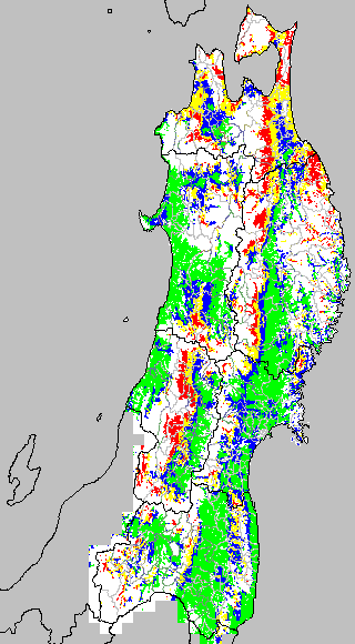 安全作期の策定にある気温指標のうち、中苗・成苗移植の安全早限日の気温指標13.0℃を用いて表示しています。13.0℃以下については1℃刻みで表示し、可能域がどのように推移するかをみるものです。