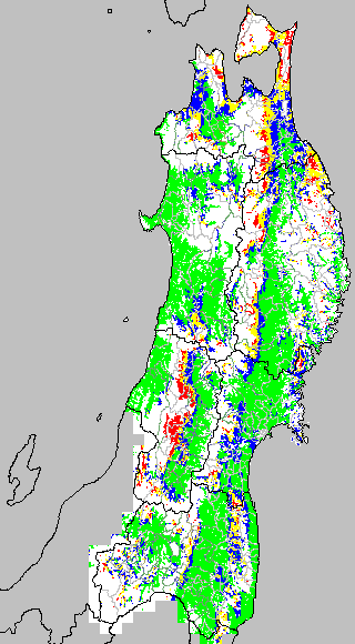 安全作期の策定にある気温指標のうち、中苗・成苗移植の安全早限日の気温指標13.0℃を用いて表示しています。13.0℃以下については1℃刻みで表示し、可能域がどのように推移するかをみるものです。