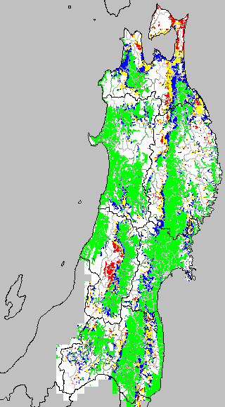 安全作期の策定にある気温指標のうち、乾田直播の安全早限日の気温指標13.5℃を用いて表示しています。13.5℃以下については1℃刻みで表示し、可能域がどのように推移するかをみるものです。